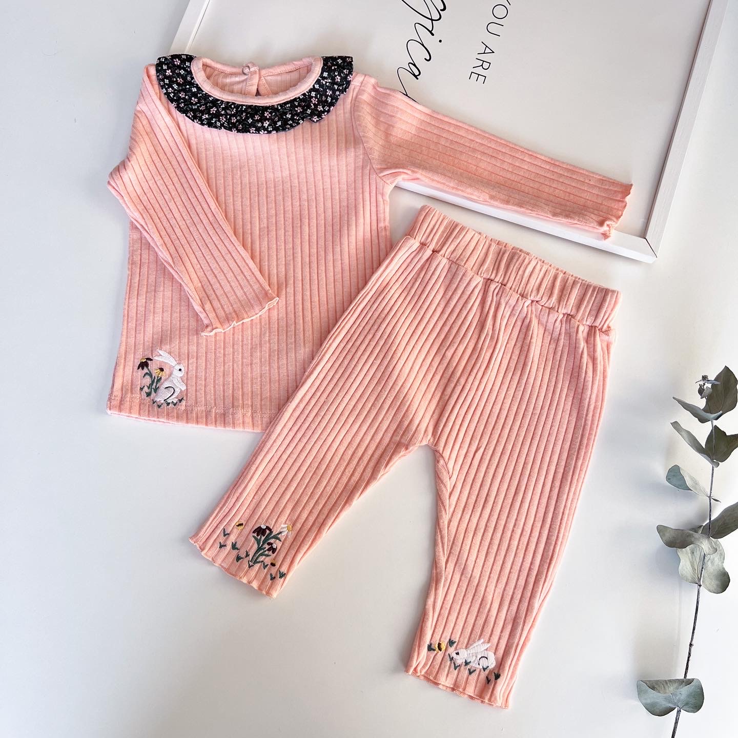Nakışlı Fitilli Kız Bebek İkili Takım Somon Pembe